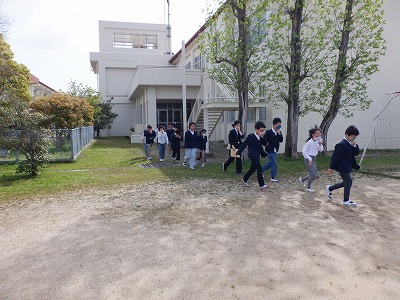 各教室で事前に、火災などの災害の場合にどのようなことに気を付けるのかを話し合いました。特に「お・は・し・も」を守って避難することの大切さを話し合った子どもたちは、避難のときにも「お・は・し・も」をしっかり守って、「押さない・走らない・しゃべらない・もどらない」を確認することができました。