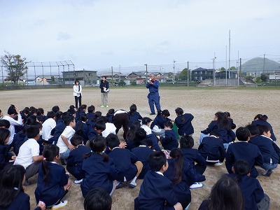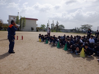 東浅井消防署から2名の職員さんに来ていただき、避難訓練の様子を見ていただきました。災害の怖さや避難するときの判断の大切さをお話しいただきました。